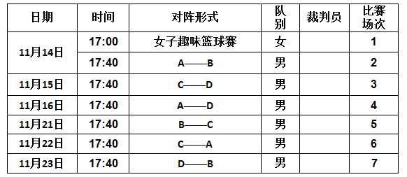 男队打循环赛按积分决定名次。女队为趣味投篮大赛。