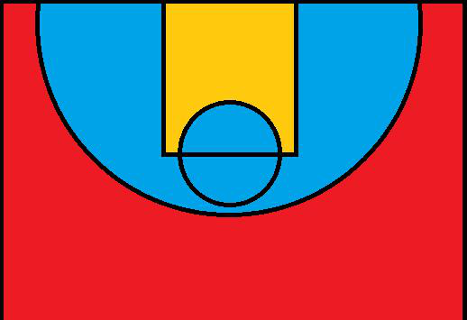 蓝色区域投进一球得3分;