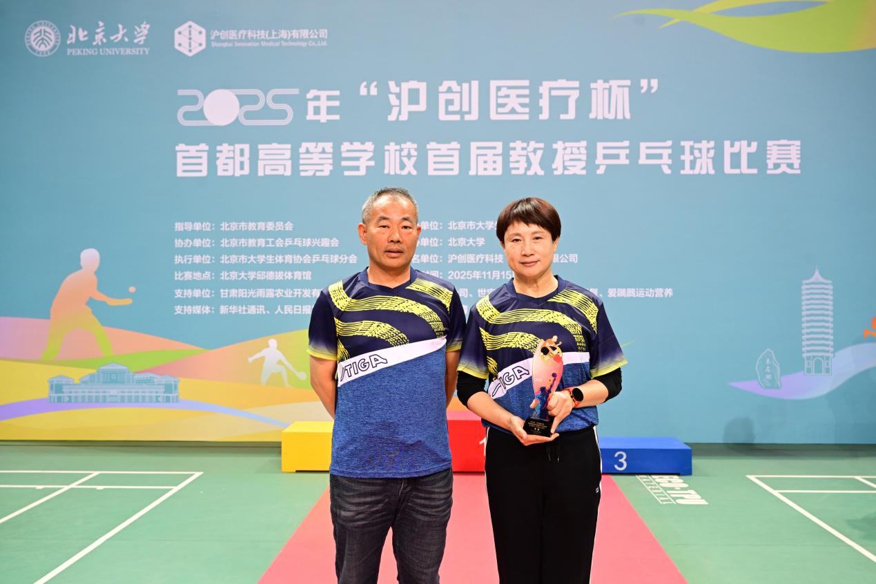 11月15日上午,2025年首都高等学校乒乓球锦标赛(单项赛)暨2025年首都高等学校首届教授杯比赛在北京大学邱德拔体育馆开幕。本次赛事由北京市教育委员会指导、北京市大学生体育协会主办、北京市教育工会乒乓球兴趣会协办、北京大学承办。此次比赛共有来自首都64所高校的110 名教授选手(含十几位高校校长和1位院士)参加。我校信息中心主任孙社文教授和体育部李凤华教授参加了此次比赛,最终李凤华教授取得了女子单打季军的好成绩。