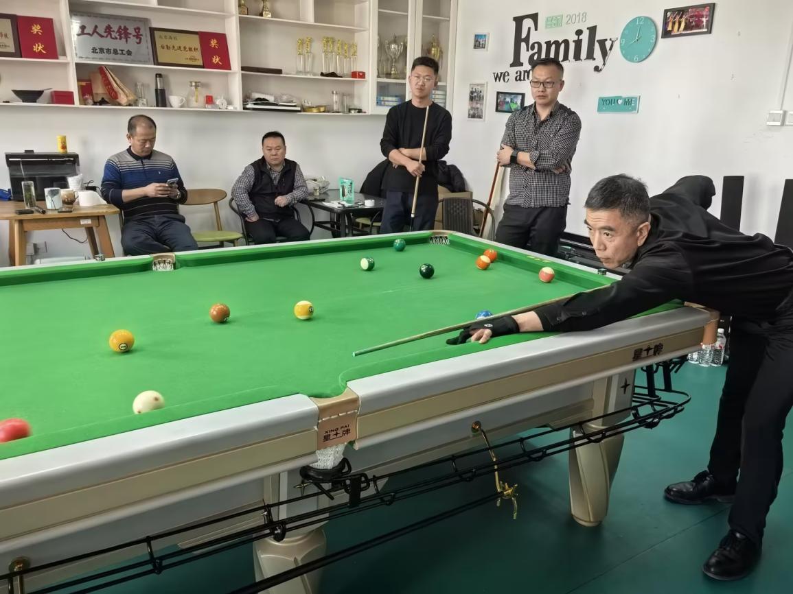 本次比赛由校工会主办,校教职工台球协会牵头策划,采用中式黑八双打规则,单败淘汰赛的方式展开;来自全校各分会的21组、共计42名教职工携手参赛。
